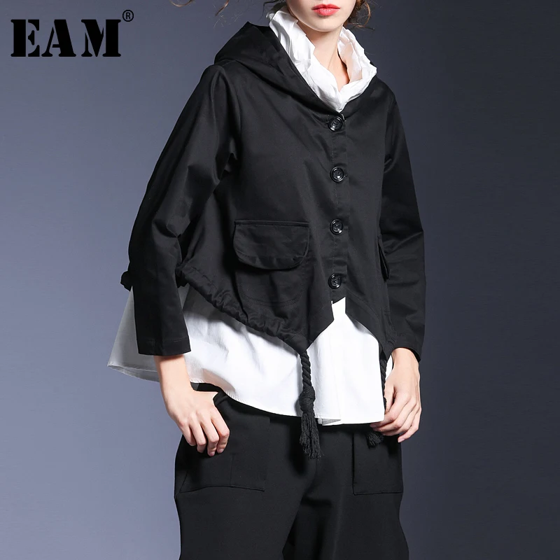 Goede Koop [EAM] 2019 Nieuwe Herfst Winter Stand Colloar Lange Mouwen Ruches Split Joint Losse Grote Omvang Jas Vrouwen Jas mode Tij JI068 Goedkoop